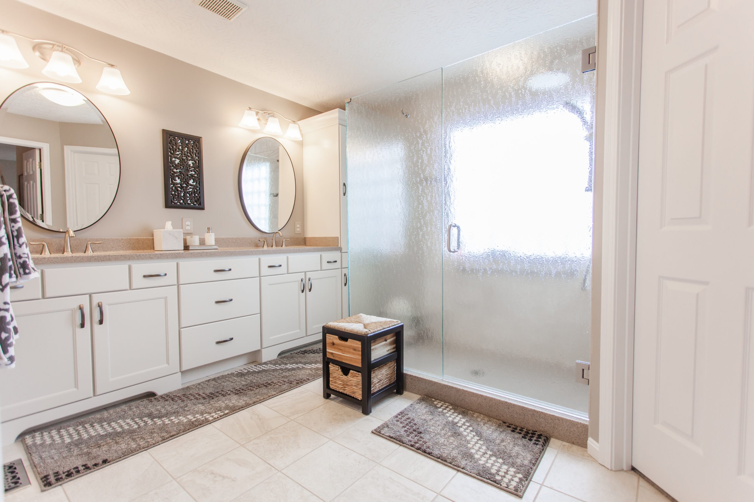 Before remodeling, this bathroom was dark and dated, with a separate shower and bathtub using up a lot of space. The homeowners decided they could do without the bathtub and opted for a luxuriously large shower with a full frosted glass perimeter. Now, they have lots of natural light coming in, plus added privacy. Removing the tub also allowed enough room for a linen cabinet and a large double vanity packed with storage. Their new space is brighter, more modern, and extremely functional.