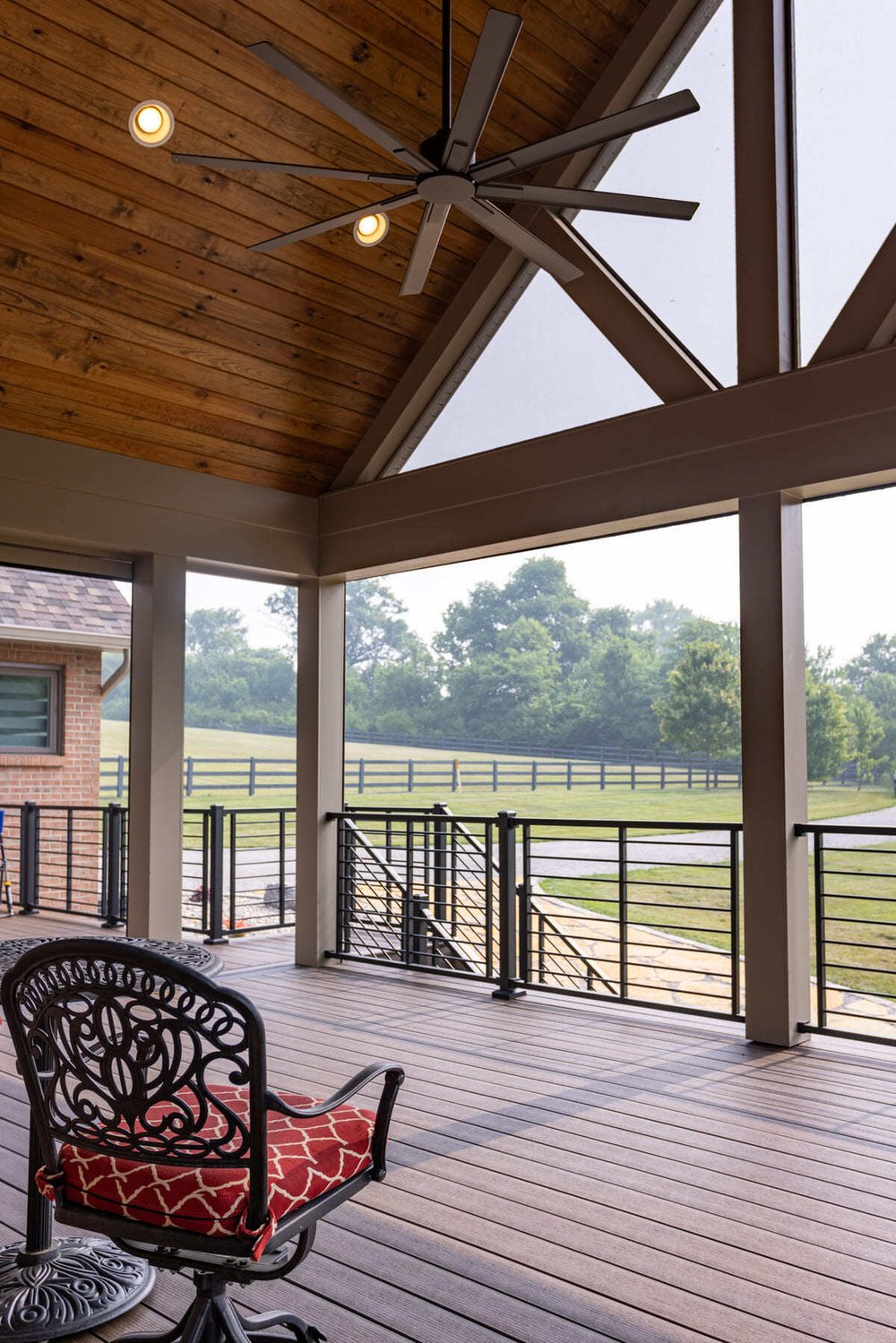 One of the standout features of this project is the covered deck with a faux gable roof. Integrated into the existing roofline, the gable adds architectural drama and elegance to the outdoor space. But it's not just about looks; the gable roof provides practical benefits, such as enhanced air circulation and protection from the elements. Equipped with motorized screens, this area can be easily transformed to offer comfort and protection from insects and harsh weather, ensuring an enjoyable outdoor sanctuary in any season.